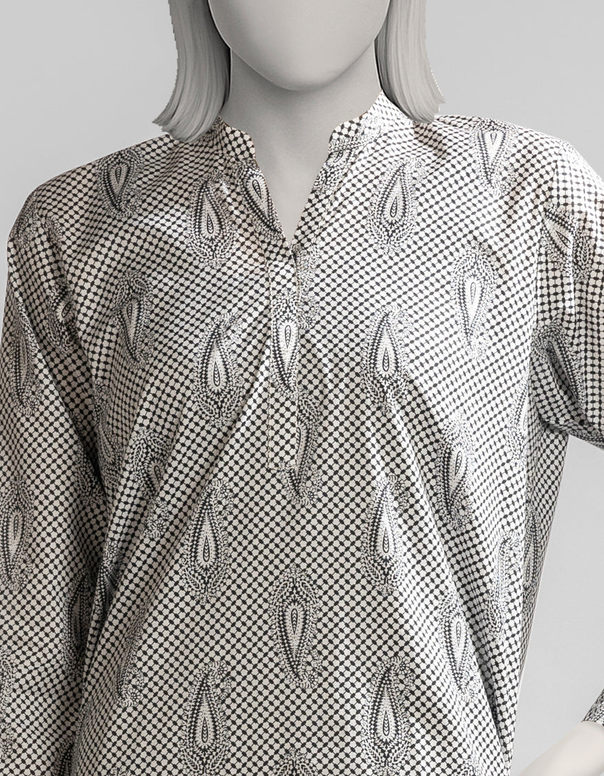 Collection: Basic Mill Print B&W Lawn Shirt