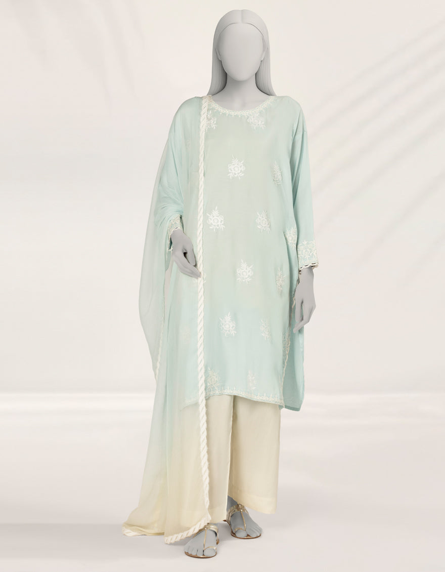 Collection: Embroidered Dyed Maple Silk Shirt - Digital Print Basic Maple Silk Trouser - Basic Digital Print Impure Chiffon Dupatta