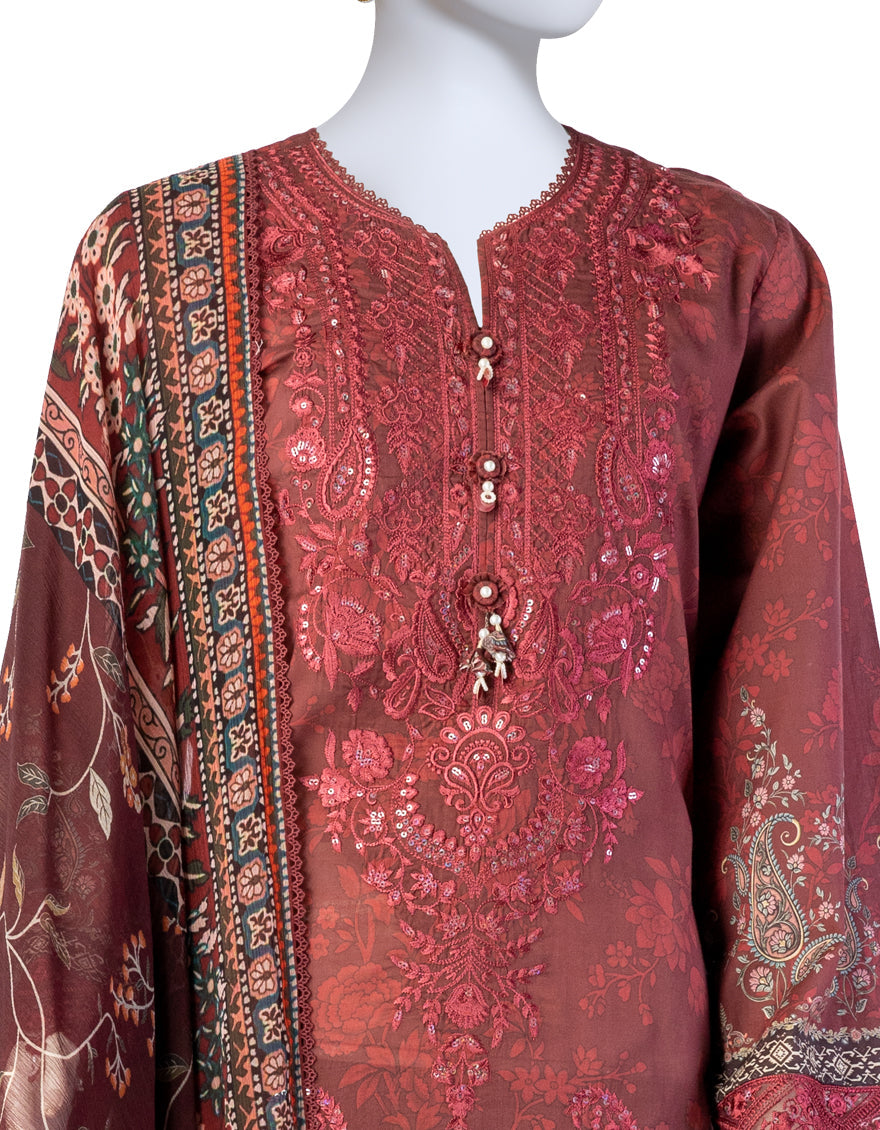 Embroidered Digital Printed Lawn Shirt: 1.75 Meters