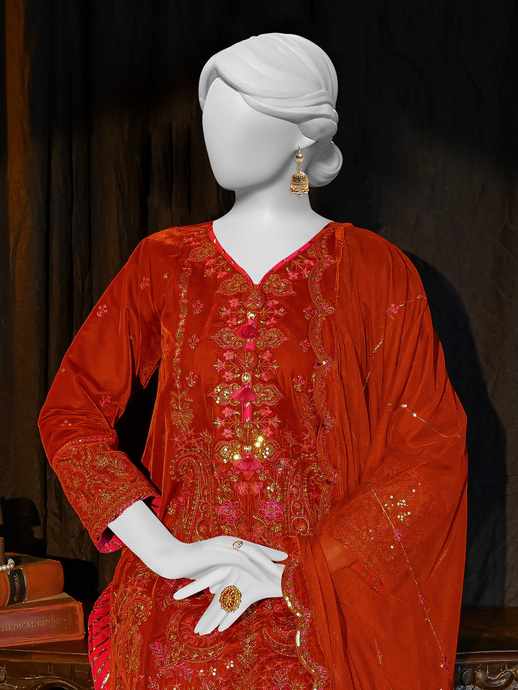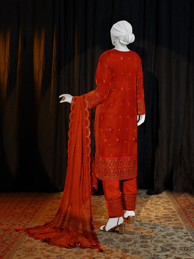 Ready-To-Wear Dupatta, Net Base With 4 Side Embroidered Velvet Borders, 2.50 M