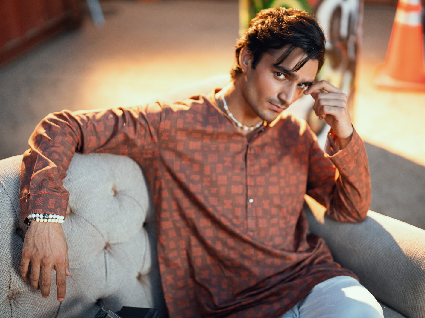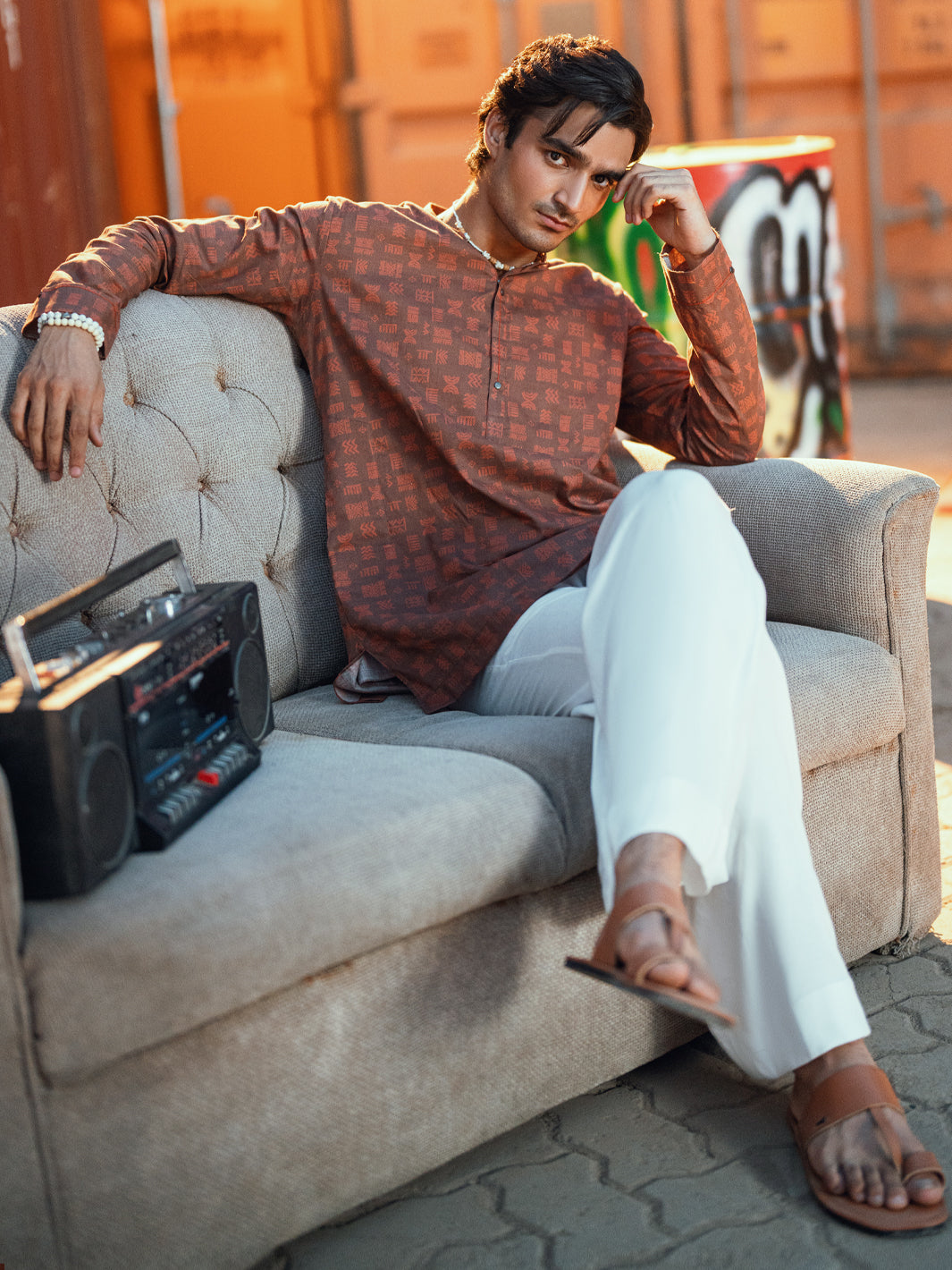 A Digitally Printed Kurta Elevated With Contemporary Cut-And-Sew Detailing.