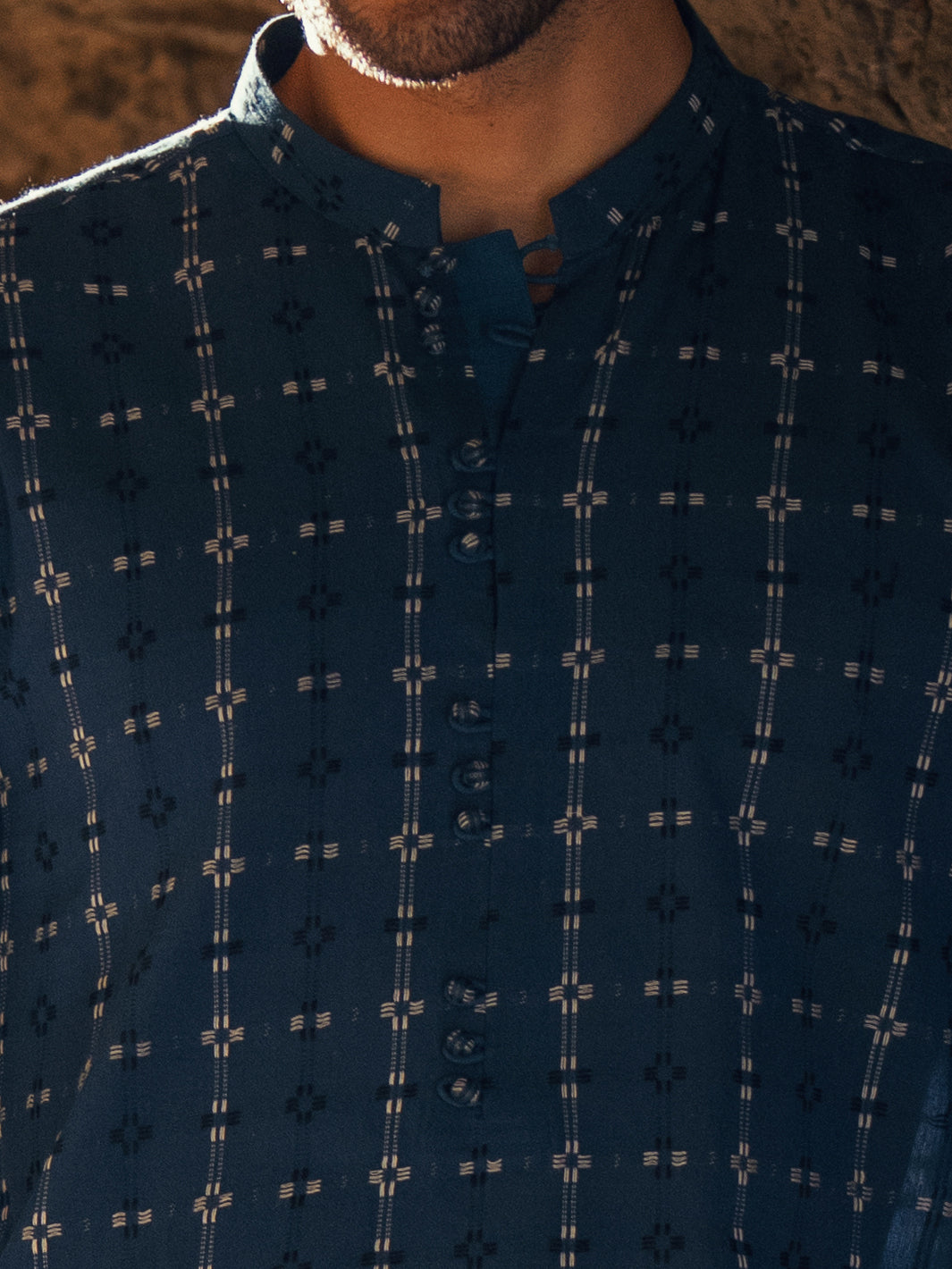 A Finely Woven Bunnat Kurta Adorned With Elegant Loop Button Details