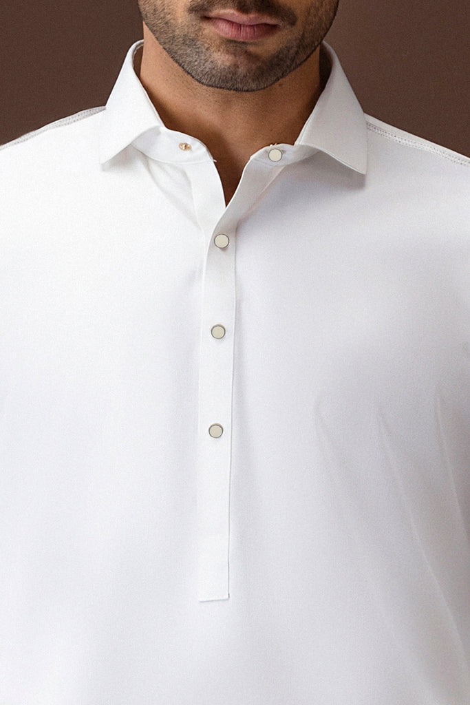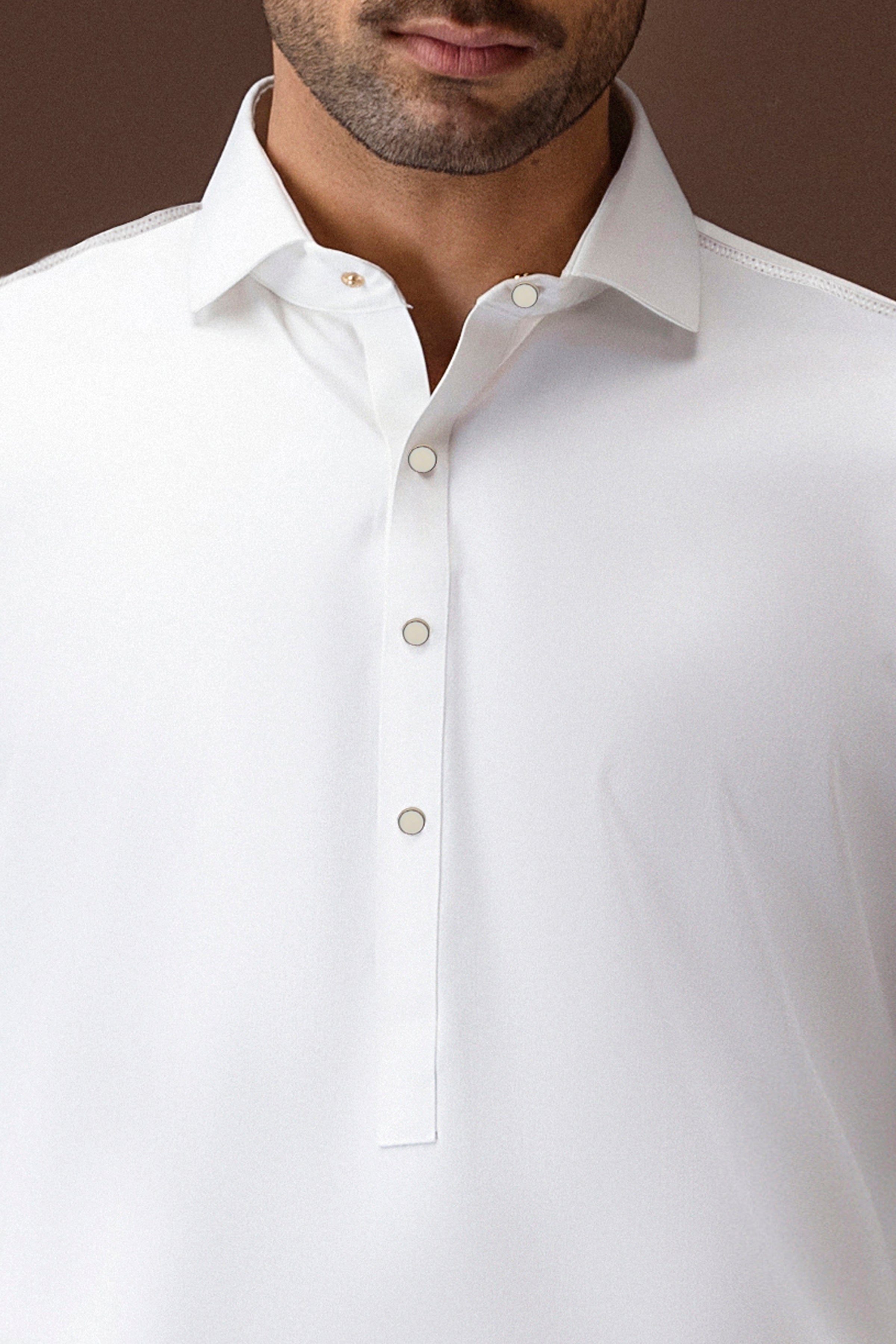 Shirt Collar With Cuff. Embroidery on Front, Collar Back, Yoke, Cuffs and Sleeve Vent. Square Hem