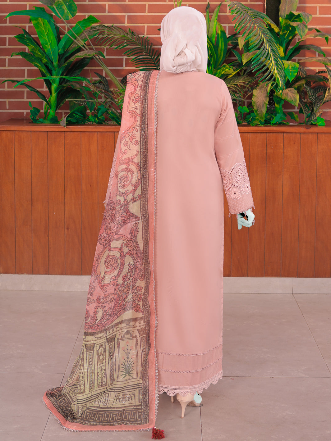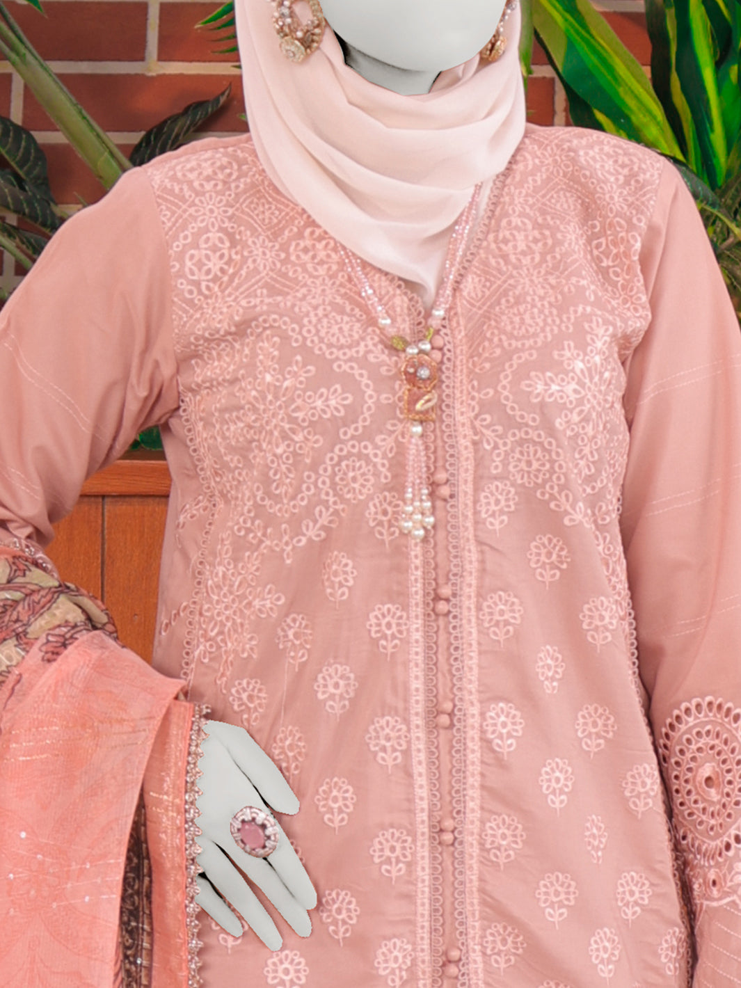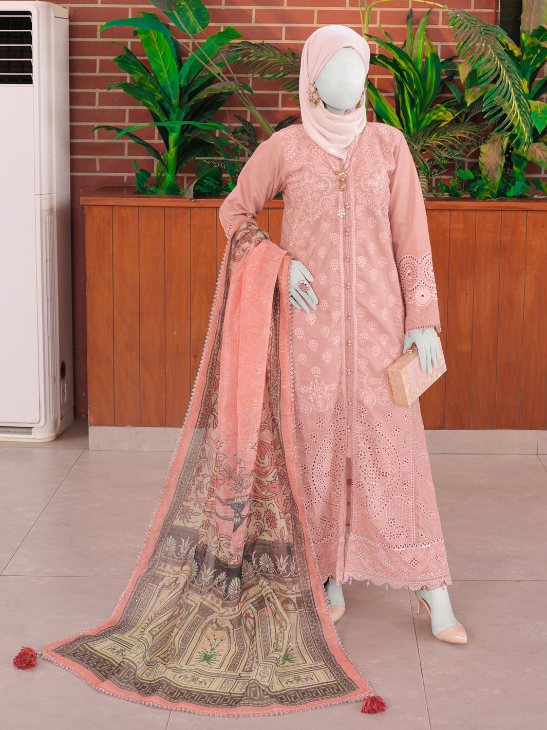 Elevate your style with this stunning suit which Adds a touch of refinement to your wardrobe with this 3-piece chickenkari embroidered outfit, featuring egret fancy embroidery that adds a touch of sophistication and a fancy Jacquard dupatta that is perfect for any occasion.